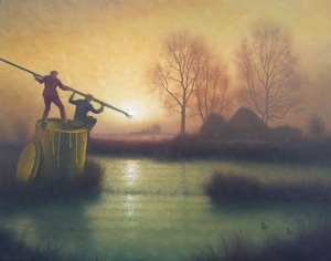 Na het voltooien van een grafische opleiding en jarenlange zelfstudie is Theo Leering sinds enige tijd full time werkzaam als beeldend kunstenaar. Zijn stijl valt moeilijk in één hokje te plaatsen maar is altijd figuratief. Het beweegt tussen realistisch en absurdistisch en is vaak melancholisch van toon. Achter deze melancholie schuilt te allen tijde een sprankje hoop. De thema’s lopen sterk uiteen al speelt muziek in veel van zijn werk een belangrijke rol. In principe kan alles wat op zijn netvlies verschijnt, hoe klein of ogenschijnlijk nutteloos ook, dienen als idee voor een schilderij. In opdracht maakt Theo portretten en muurschilderingen. Daarnaast geeft hij een aantal dagdelen per week les in tekenen en schilderen.