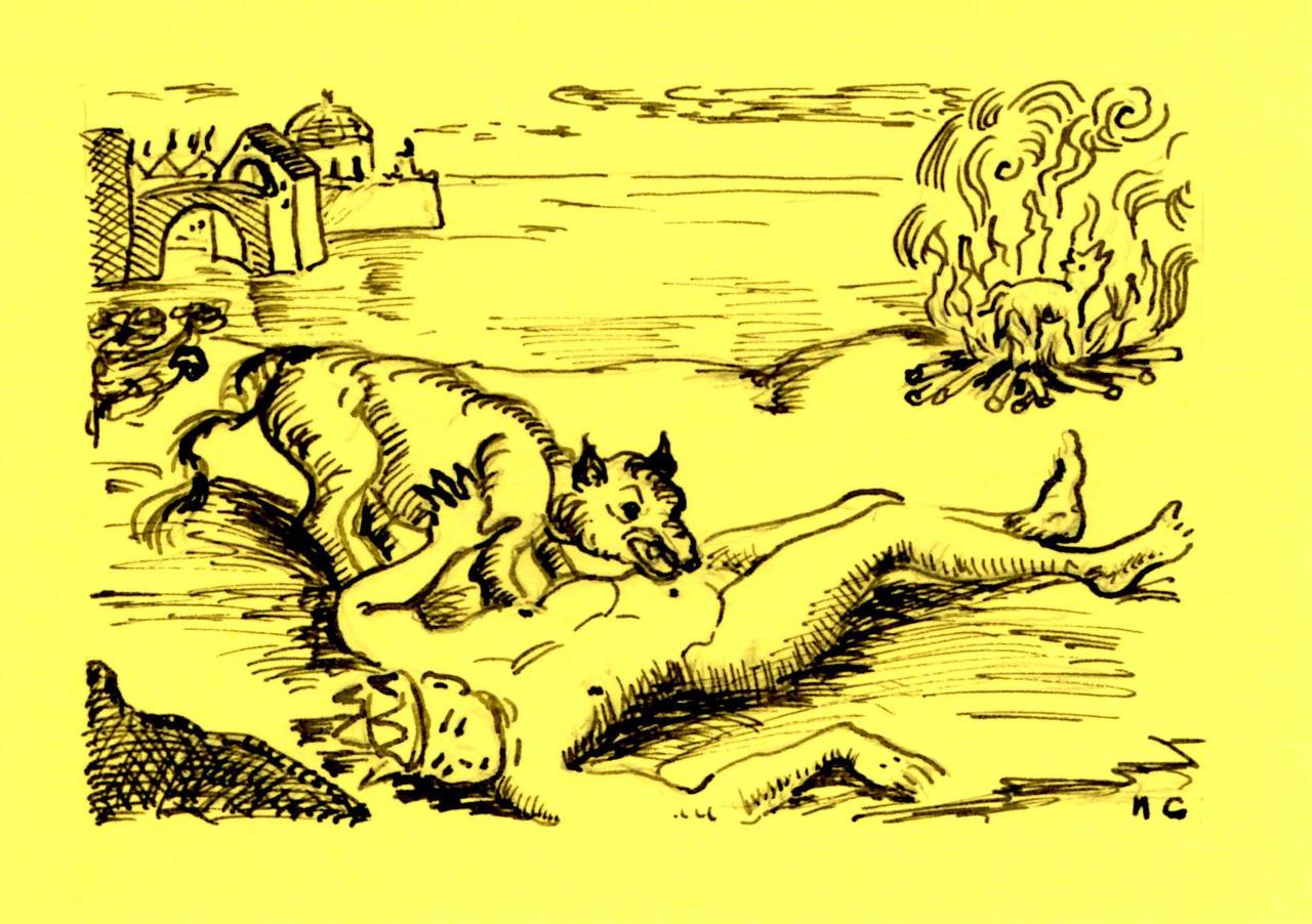 Hond Oorlog Dog Vuur Stad Kasteel Castle City Poort War Fire Gate Branden Burning