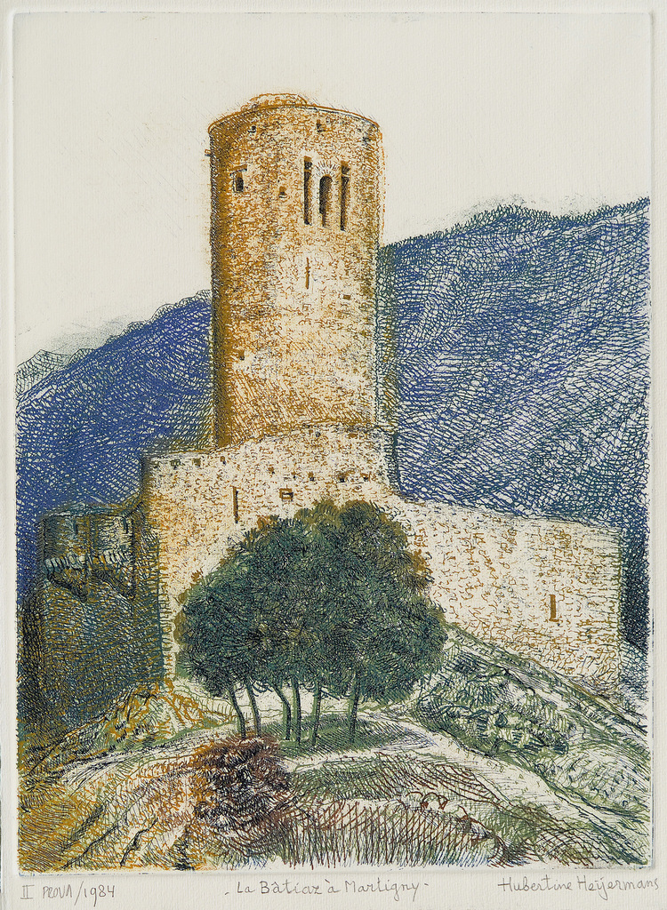 Zwitserland Switzerland Concours Martigny 3-copperplates Color-etching 3-etsplaten La-batiaz Old-tower