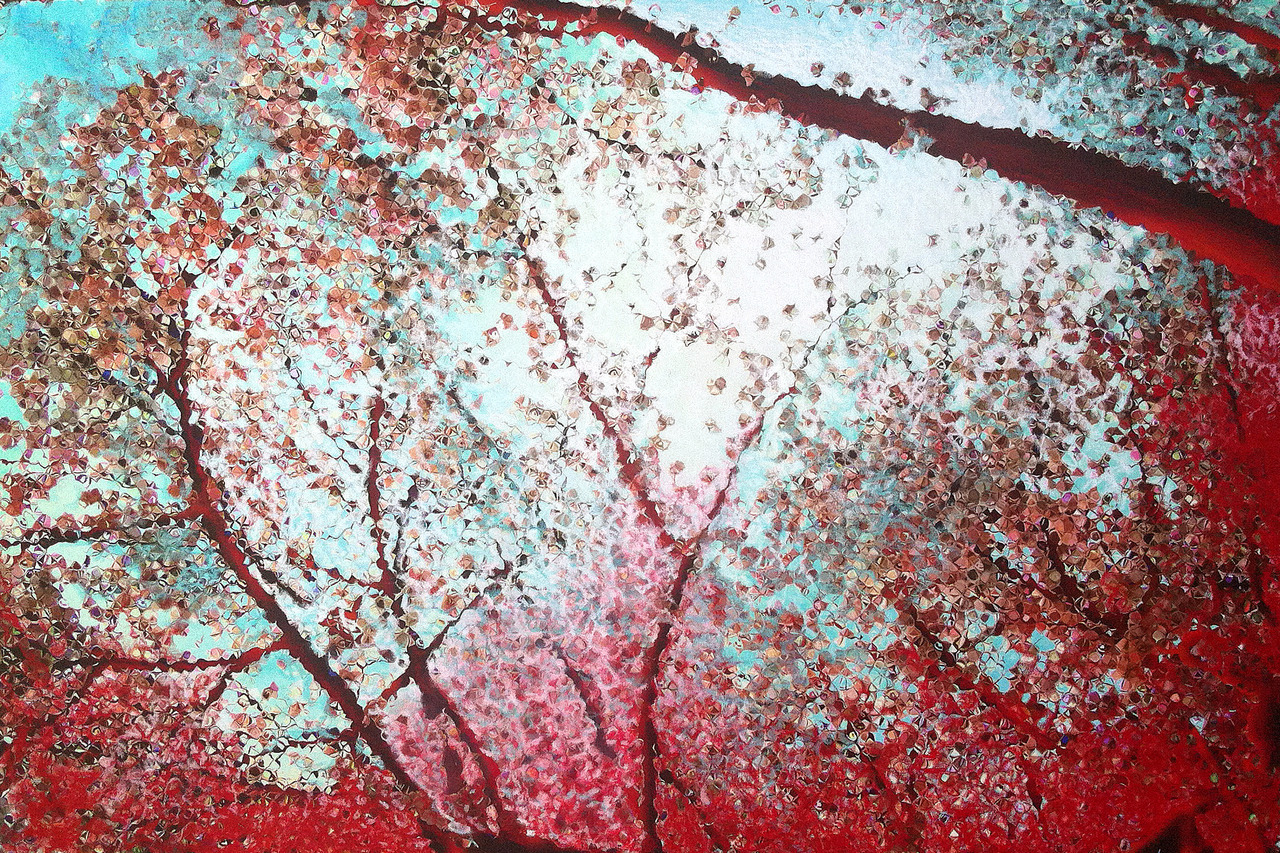 Digitale grafiek/bewerkte foto | Uitgeprint en nabewerkt met oliepastel en vernis op canvas, met oplage 10. | Zwarte omkadering is onderdeel van het doek 90x120 cm. | Het afgebeelde doek is verkocht.
