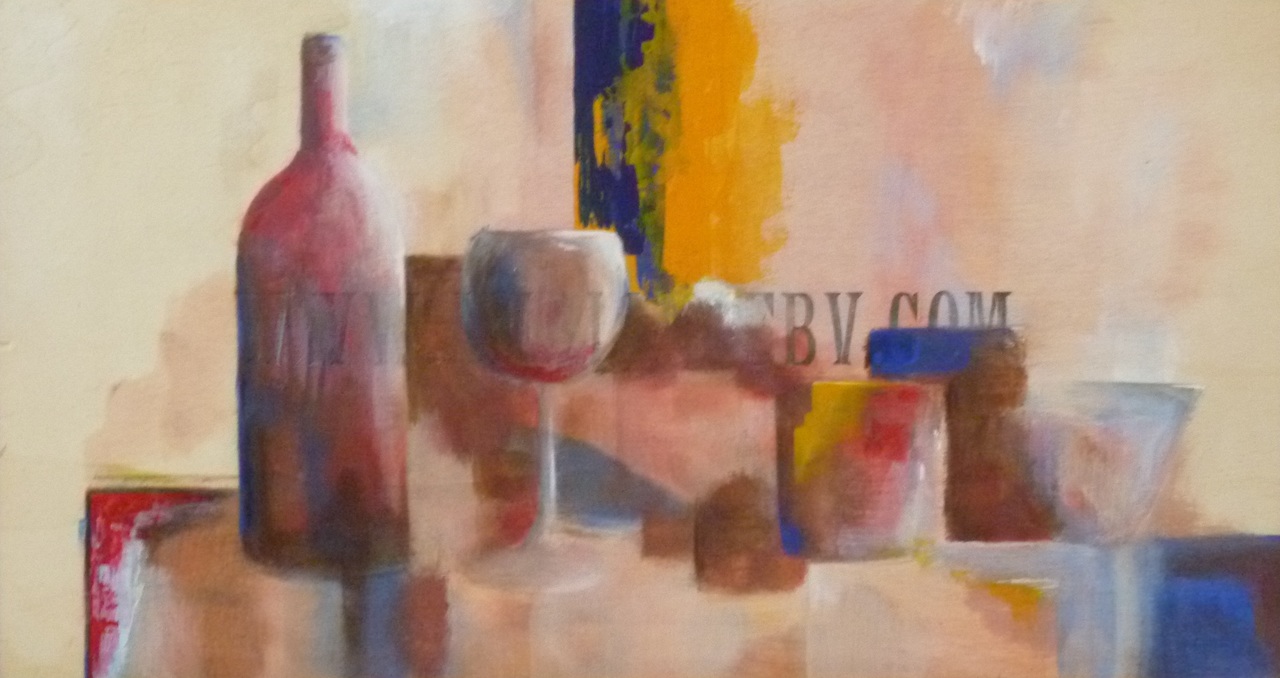 Schildering op deksel van wijnkistje.