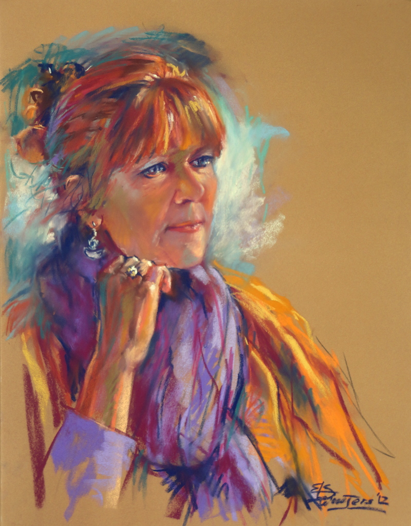 Portret in pastelkrijt op Sansfix van Elly van der Moolen (Ella Molen) auteur van o.m. "Getrouwd met Portugal"