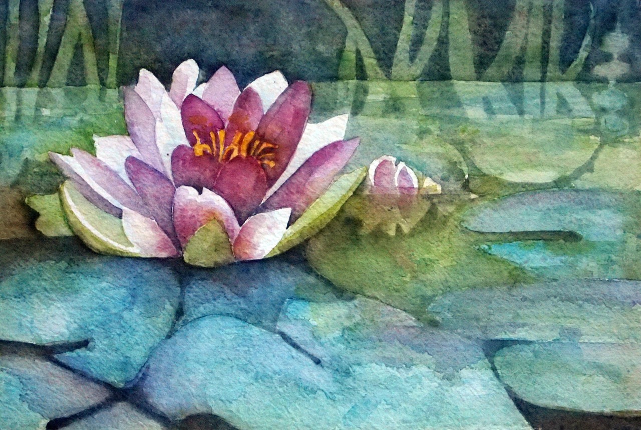 Waterlelie op handgeschept "Moulin de Larroque" papier 400gr.