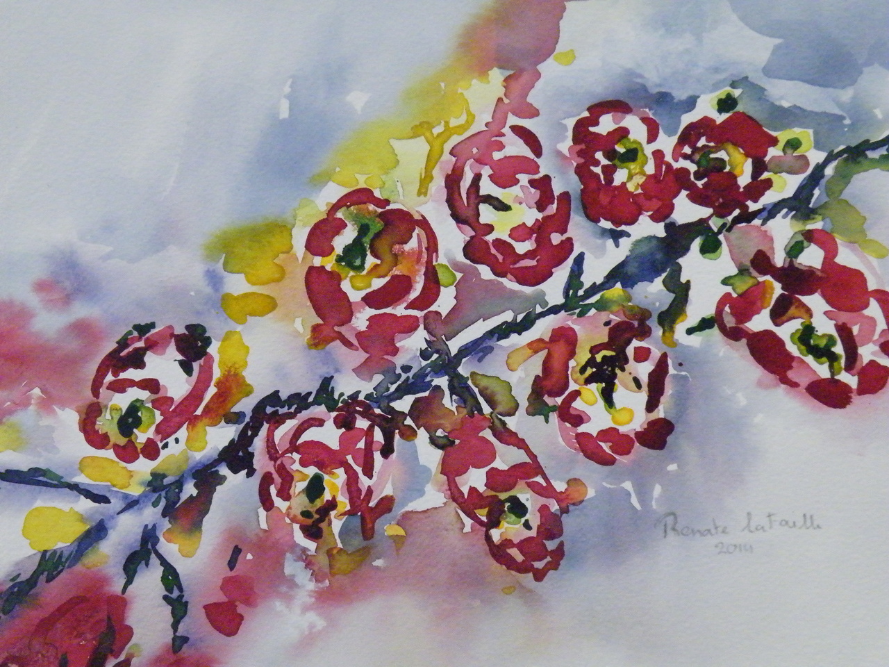 Hallo mijn naam is Renate la Faille geboren te Enschede in 1968. In 1995 ben ik verhuisd naar Almelo en via via ben ik in aanraking gekomen met het medium aquarel. Ik hou van de heldere kleuren en hoe de aquarelverf wanneer deze met veel water vermengd wordt in elkaar overvloeit. Inspiratie haal ik uit de natuur. Ik ga er dan ook op uit om van de natuur in al zijn schoonheid te genieten, daarvan maak ik foto's en die zet om in een aquarel. Daarnaast werk ik ook grafische technieken die soms combineer met aquarelverf. Er kunnen dan ook zeer verrassende schilderijen uit voortkomen als je beide technieken in 1 schilderij verwerkt. Sinds januari 2013 volg ik lessen op de Almelo Academie van Paul Tieke. Sindsdien maak ik een grote ontwikkeling door.