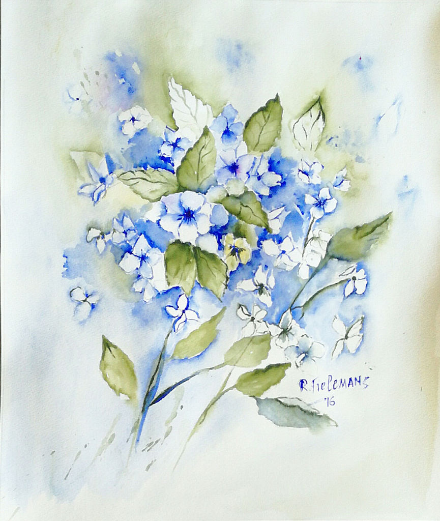 Lichtblauwe Hortensia, aquarel van bloemen