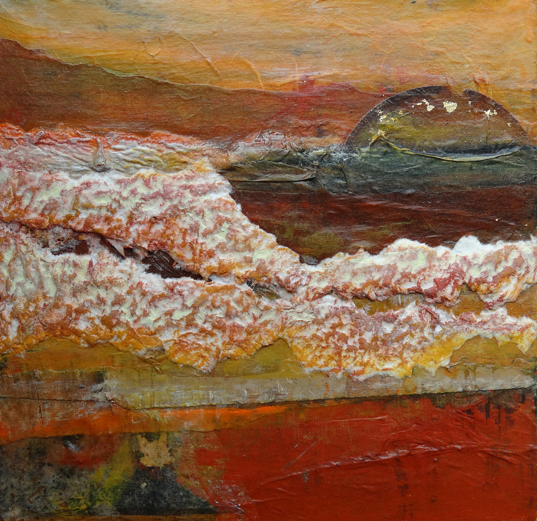 Zon Rood Oranje Zwart Acryl Oker Wolken Doek Collage