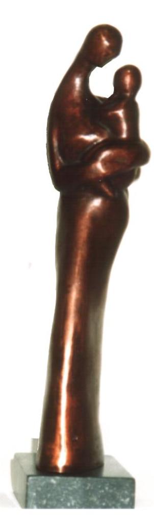 vrouw met peuter op de arm sokkel van zwart graniet oplage 6 stuks