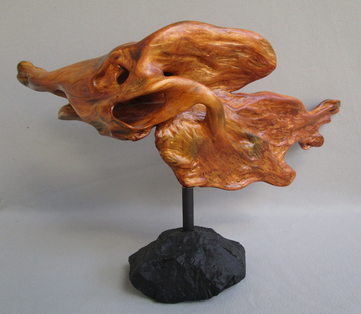 Ik ben Henny Rijkeboer (1941) en woon in Haaksbergen. Tijdens mijn wandelingen en fietstochten in de natuur zoek ik hout. Soms meteen, soms wat later zie ik wat het hout mij te bieden heeft. Na het nodige hak- en schuurwerk, waarbij ik mij laat leiden door de vorm van het hout, ontstaan vaak natuurlijke abstracten. Al kind sneed ik al kleine houtfiguren. Rond mijn veertigste maakte ik mijn eerste grote beeld. Mijn pensionering bood mij de ruimte om mijn liefhebberij te professionaliseren. Ik heb hierbij mijn eigen technieken ontwikkeld.