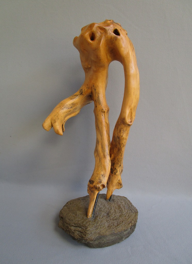 Ik ben Henny Rijkeboer (1941) en woon in Haaksbergen. Tijdens mijn wandelingen en fietstochten in de natuur zoek ik hout. Soms meteen, soms wat later zie ik wat het hout mij te bieden heeft. Na het nodige hak- en schuurwerk, waarbij ik mij laat leiden door de vorm van het hout, ontstaan vaak natuurlijke abstracten. Al kind sneed ik al kleine houtfiguren. Rond mijn veertigste maakte ik mijn eerste grote beeld. Mijn pensionering bood mij de ruimte om mijn liefhebberij te professionaliseren. Ik heb hierbij mijn eigen technieken ontwikkeld.