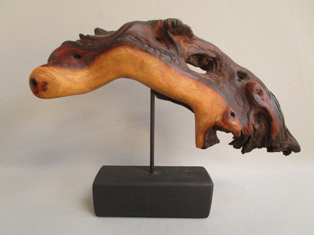 Deze sculptuur is gemaakt van de mopaniboom uit Afrika.