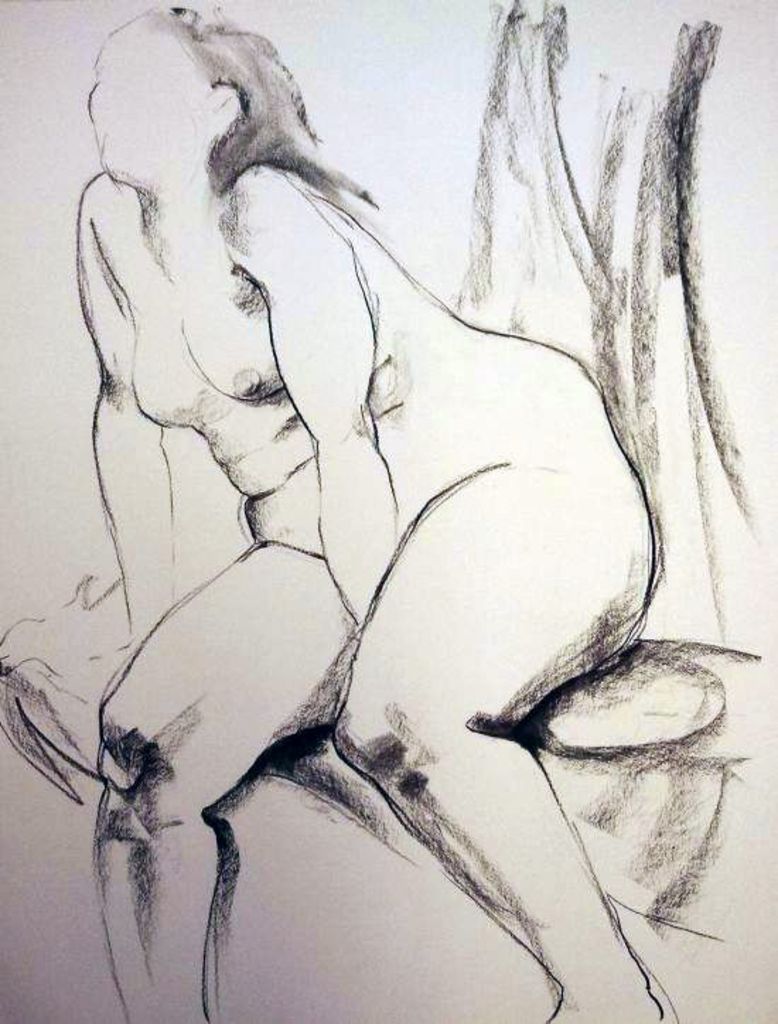 Modeltekening houtskool,niet ingelijsd
