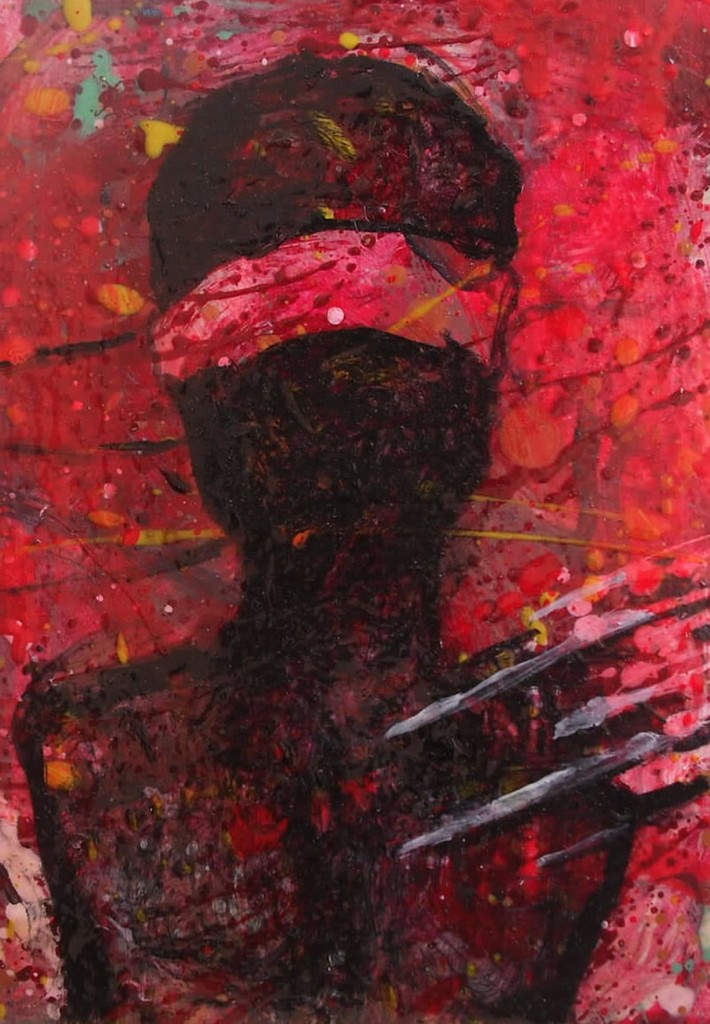 Rood Zwart Vrouw Woman Oil Olieverf Red Black Geblindoekt Blindfolded
