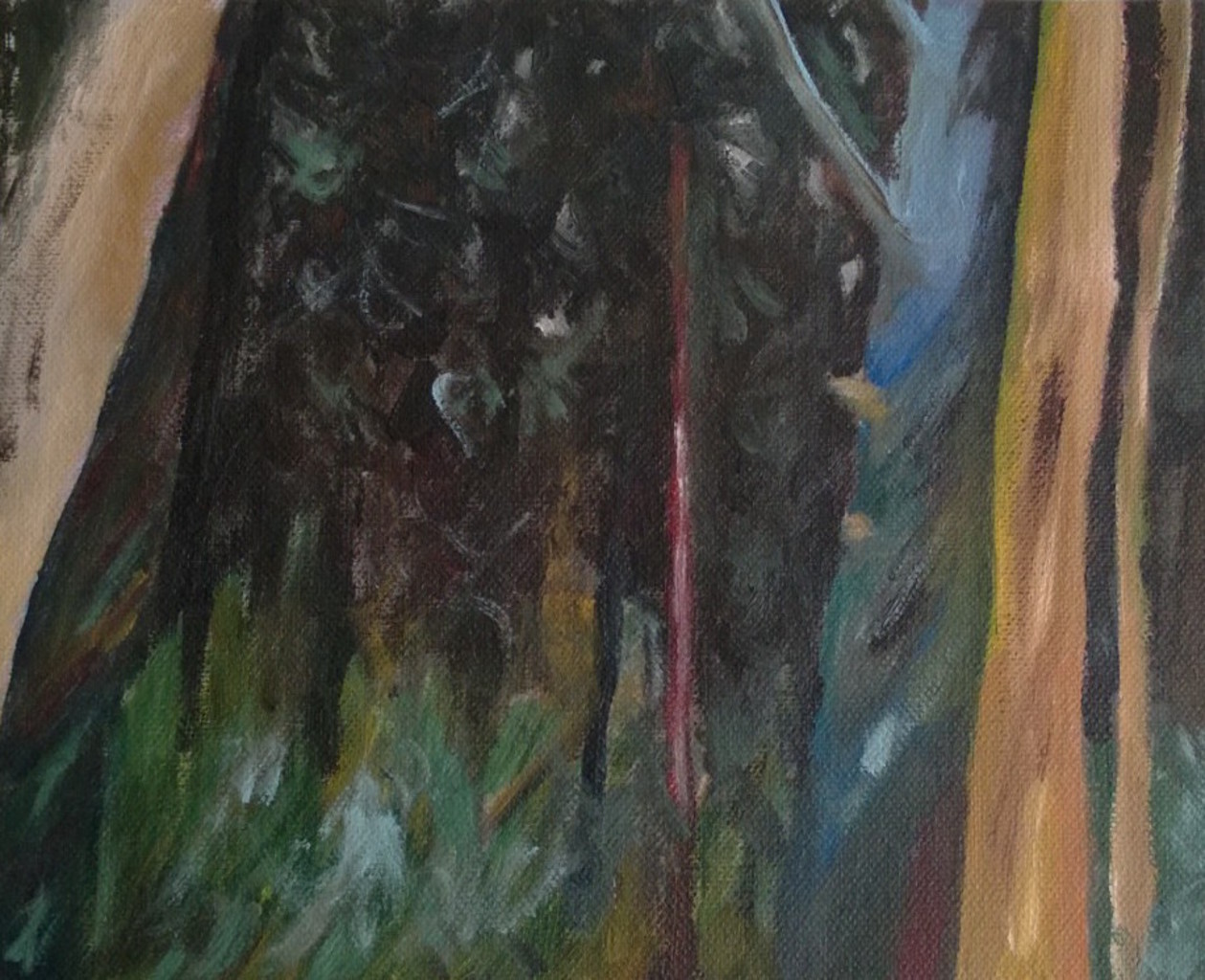 Een fargment van een grauwe dag in het dicht beboomde bos