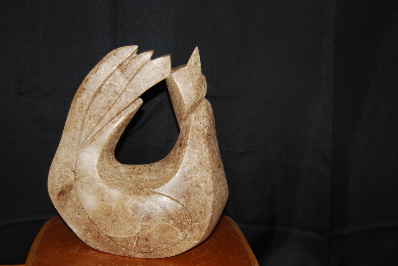 Het beeld "Trots" is gemaakt uit bruine albast. Ik heb de trots vastgelegd in de houding van het beeld, een vogelfiguur.