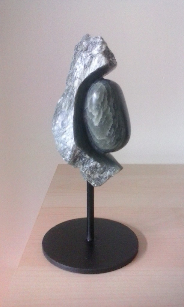 Geluksboontje uit Braziliaans speksteen op stalen sokkel, kleur: donkergrijs