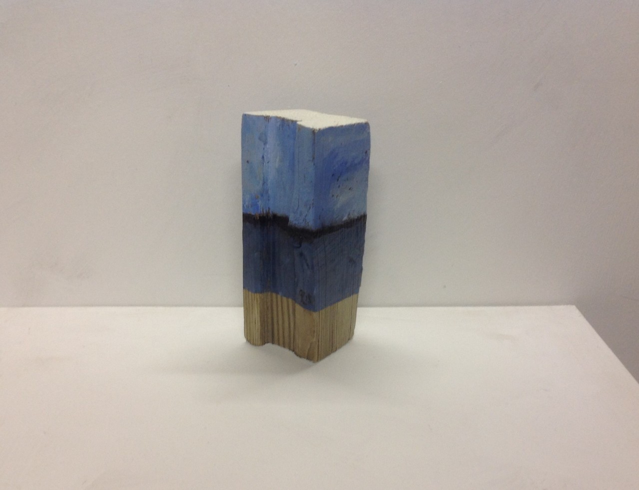 Zeeschildering op houtbrok 20 x 7 x7 cm. VERKOCHT.