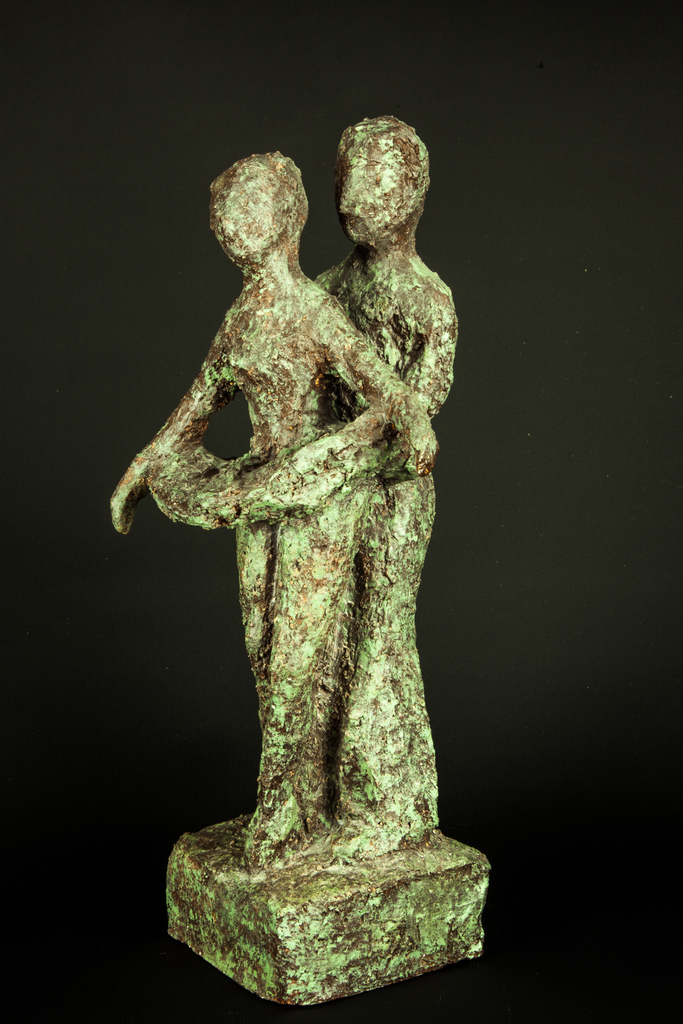 Vrouw Man Paar Mensen Dans Klei Realistisch Verhalend Keramiek Bronsgekleurd Groen Bruin Zwart Goud Sokkel Artistieke Gestileerd