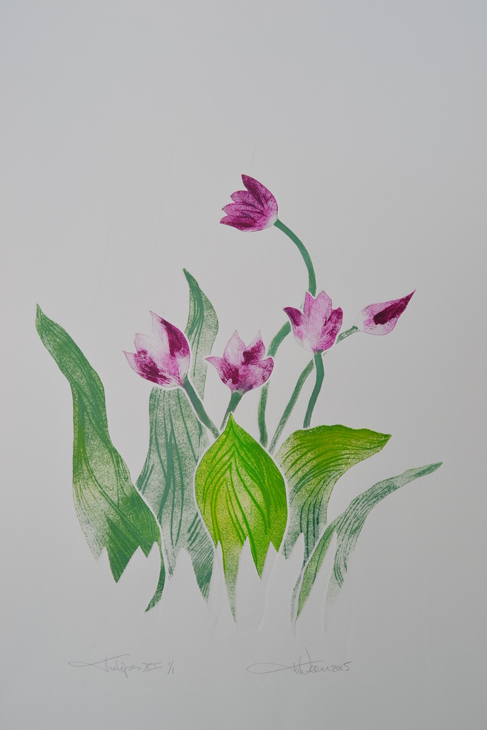 Tulpen XI / Tulipes XI - droge naald en aquatint - uitgezaagde zinkplaatjes - meerkleuren - oplage 1