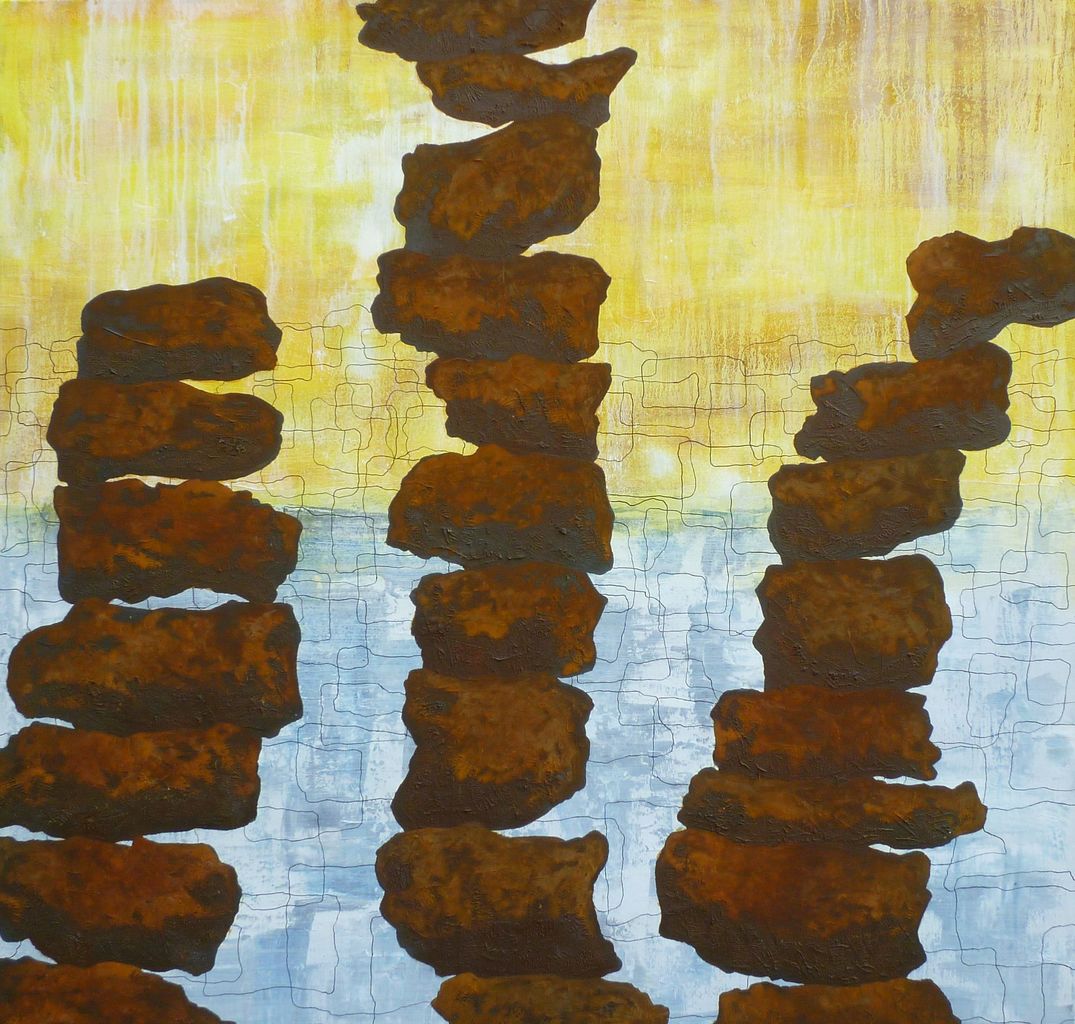Abstract schilderij in Olieverf, Inkt en "Modern Options (Rust)" op Linnen. Ingelijst (stalen baklijst) en gesigneerd.