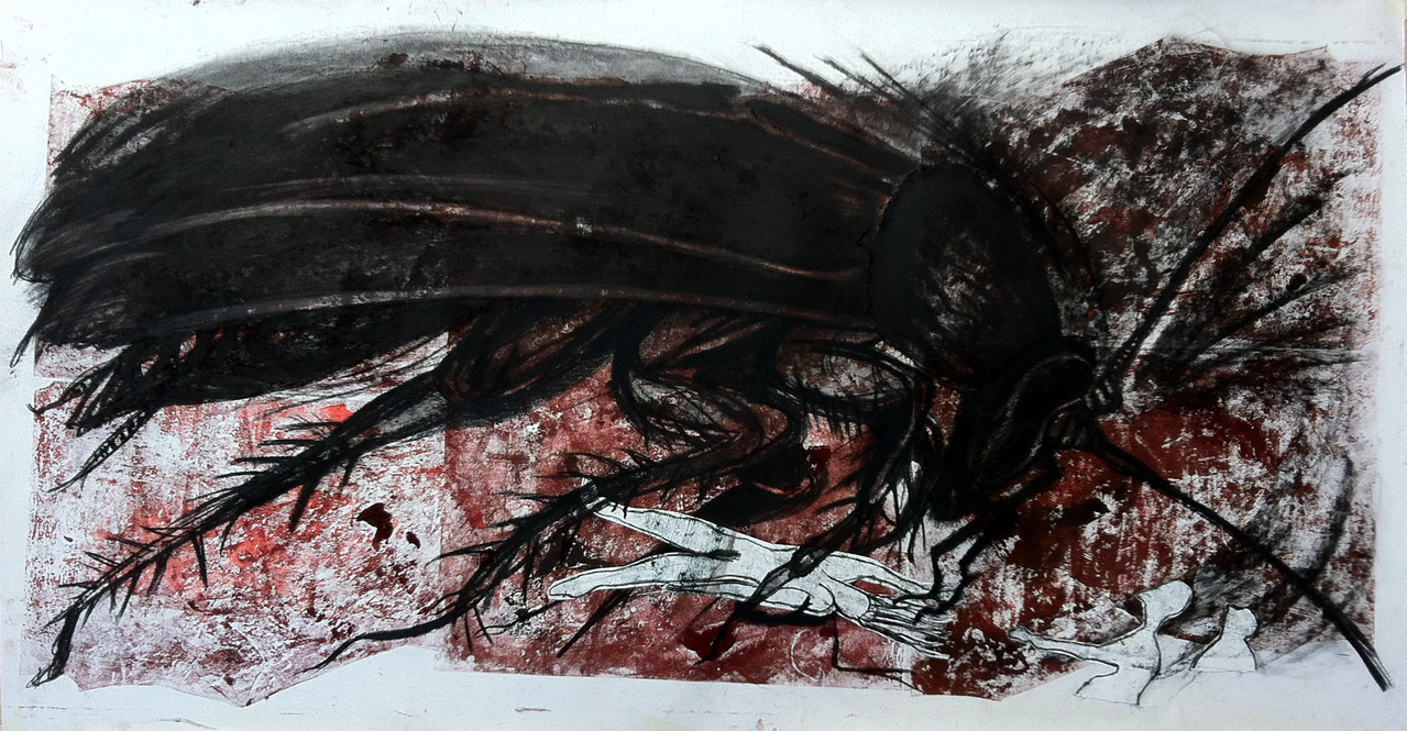 Olie monoprint, houtkool, conté op papier - 150 x 80 cm - € 500