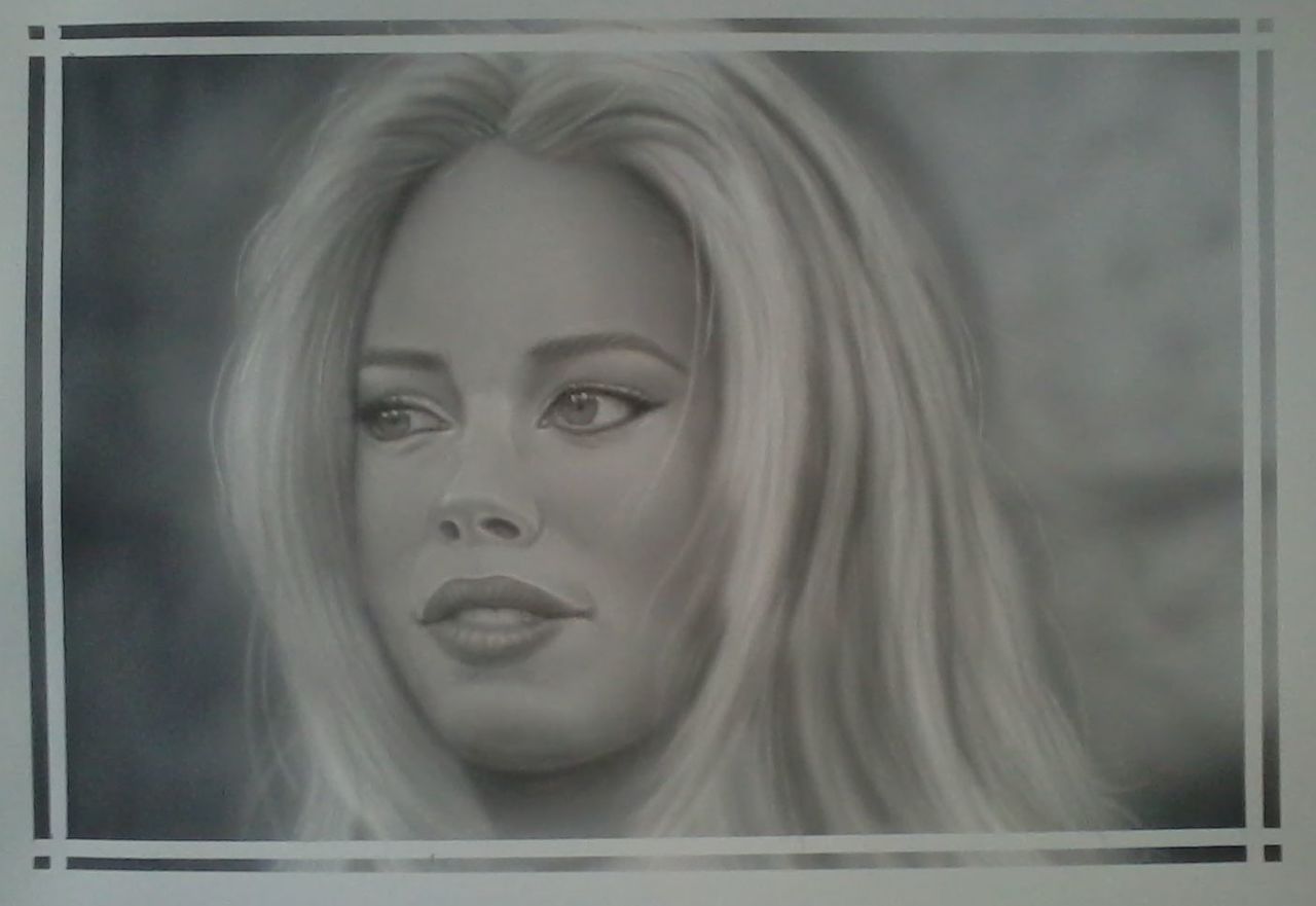 Airbrush Papier Portret Doutzen Monochroom Peynes Grijs