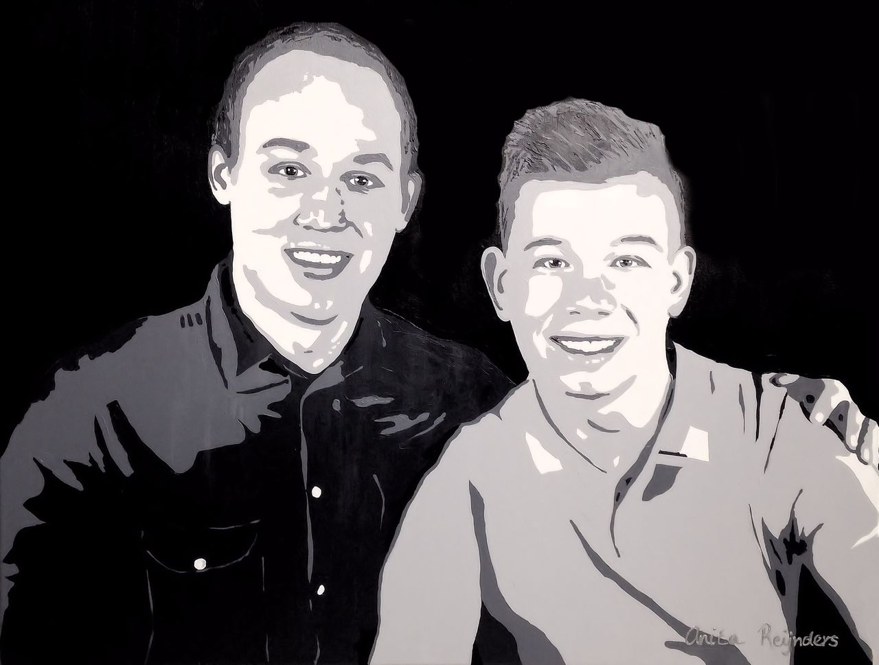 Portret Jeffrey en Rick in opdracht. Een kado voor hun vader die 50 jaar is geworden.