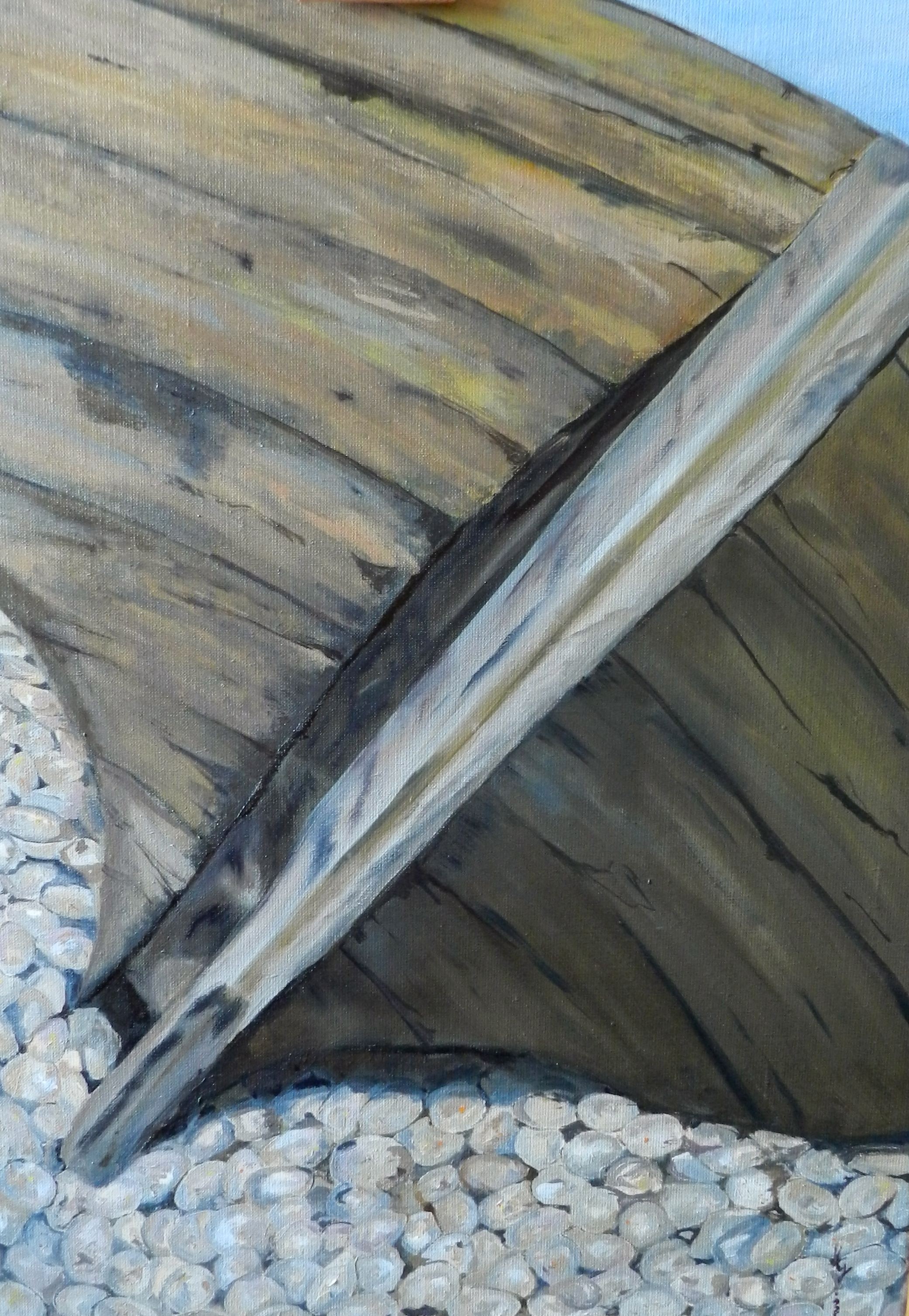 Oude boot op kiezelstrand