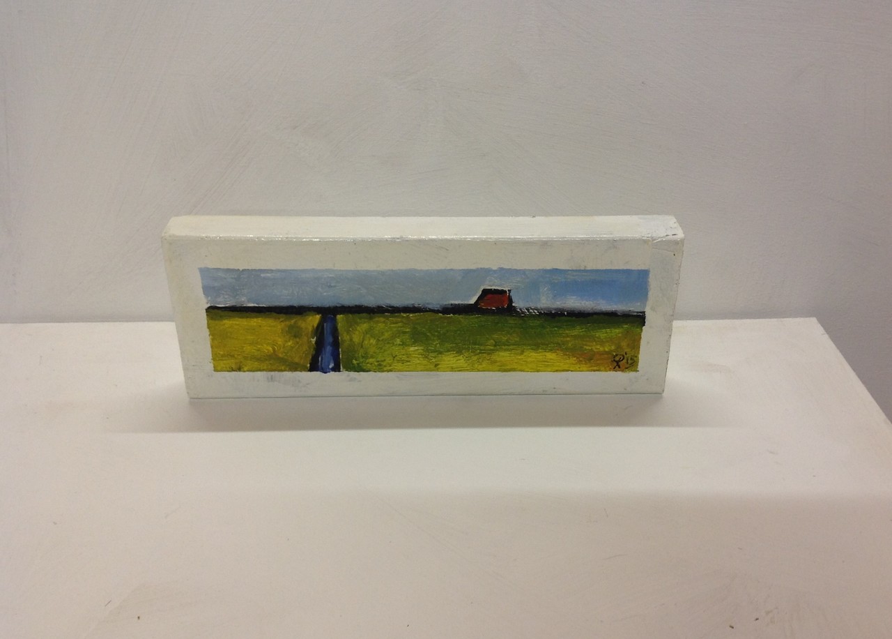 Schildering op hout. 10 x 25 x 3 cm.