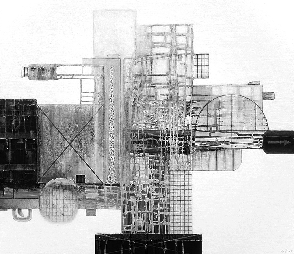 Wit Grijs Zwart Potlood Kunst Acrylverf Pijl De Architectuur Brug Gebouwen Geometrisch Flats Gebouw Mixedmedia Zandloper Kijker Verhuizen Vraagteken Trekker Overkant Drippings Magazijn Mitraillieur