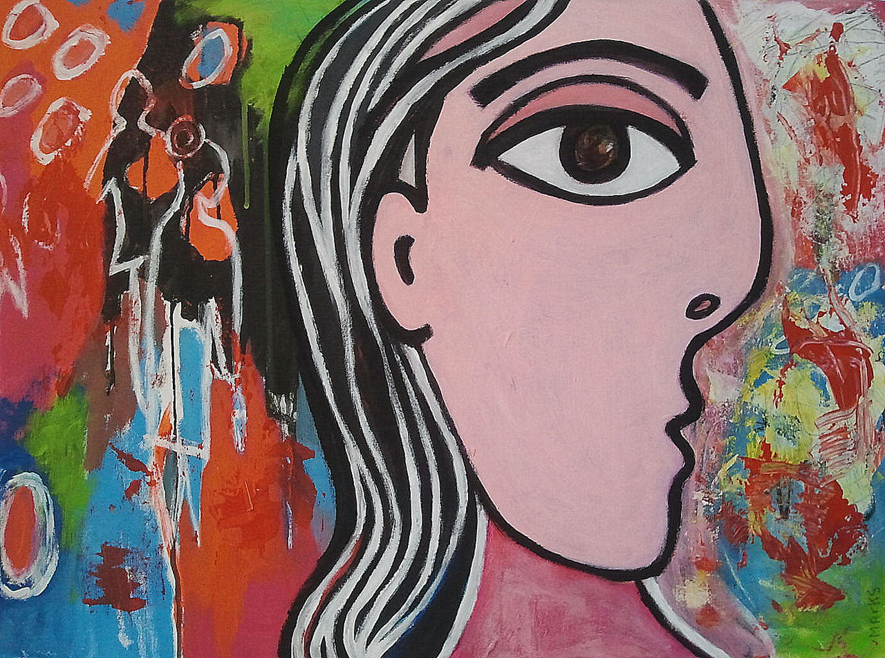 vrouw in picassostijl met abstracte achtergrond