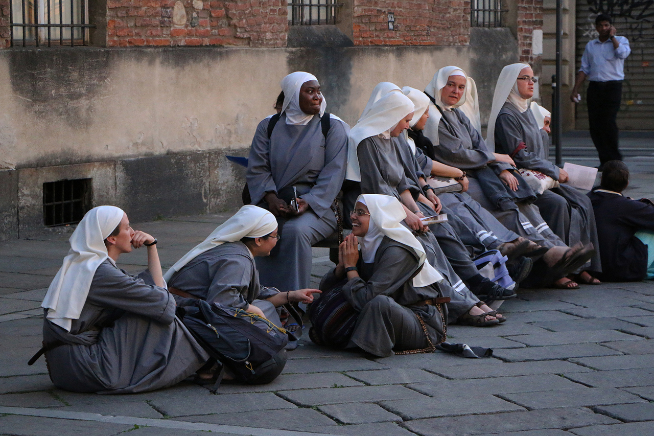 Turijn, een groep nonnen heeft zojuist de lijkwade van Christus gezien