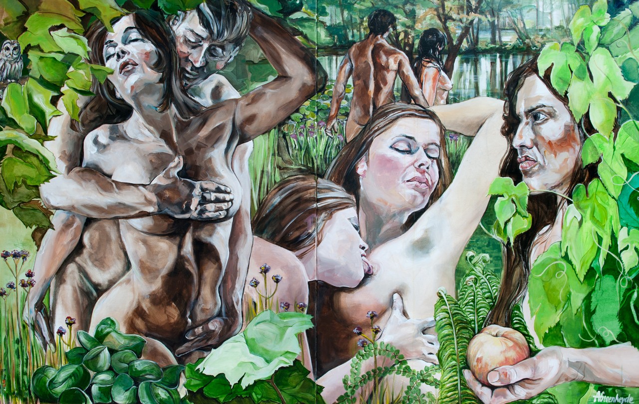 Bestemd voor de expositie voor het Jheronimus Bosch 500 project. Dit schilderij is geinspireerd op het schilderij "De tuin der lusten" van Jeroen Bosch. Een 2015 versie 2-luik