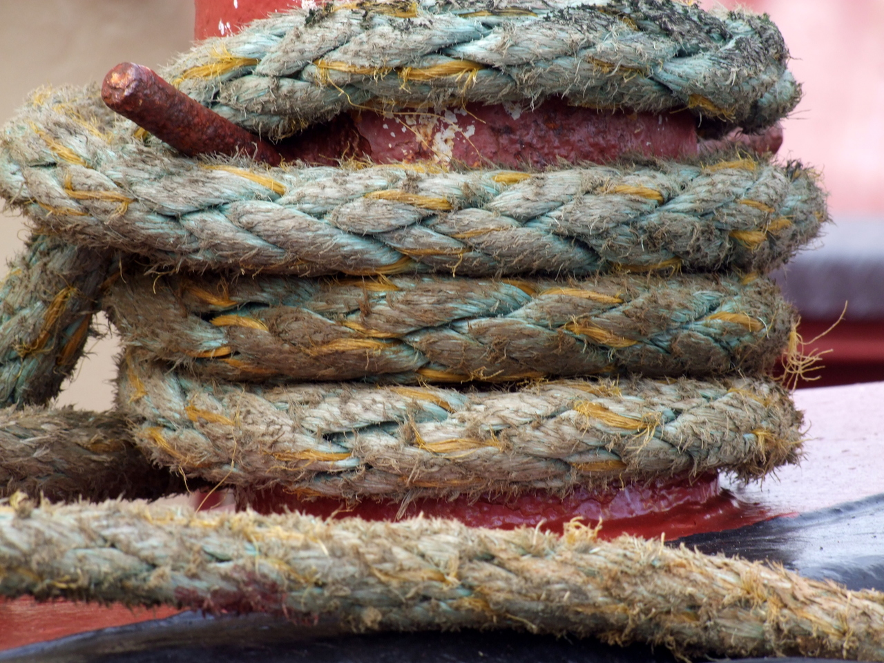 Rood Geel Bruin Touw Roest Wal Bolder Trossen Scheepstouw