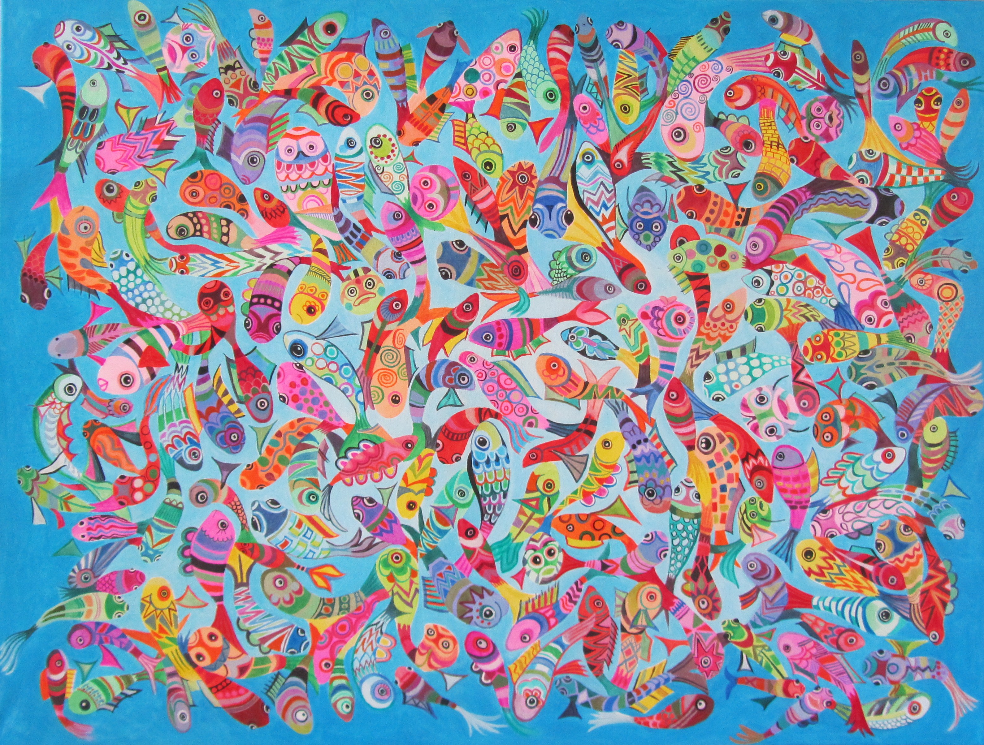 Zee Blauw Acryl Fantasie Kleuren Vormen Vissen