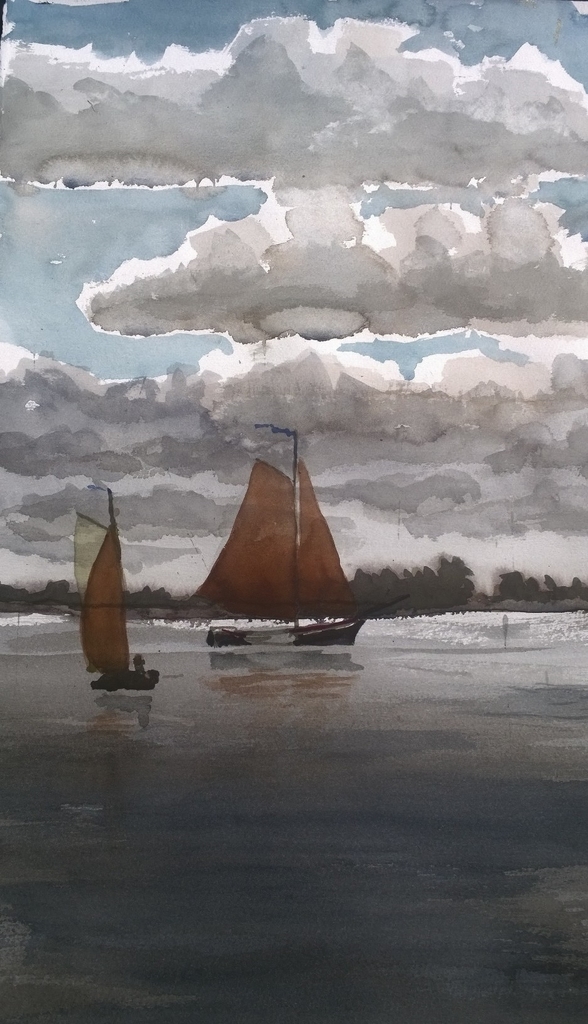 Aquarel Boot Schip Tjalk Henk Zeilboten Zeil Grou Siepel Ee Skustje