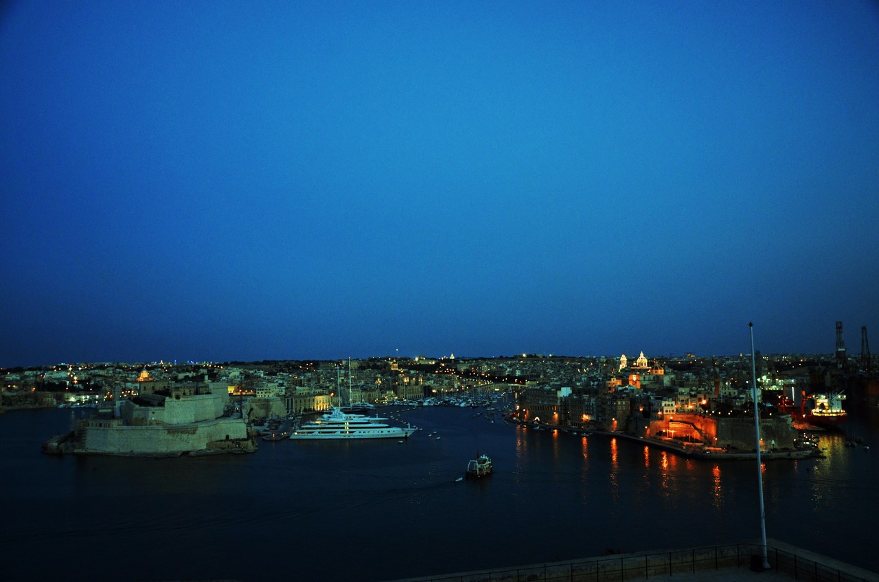 Valletta harbor at night