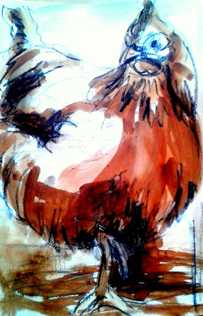 kip geschilderd op papier met inkt