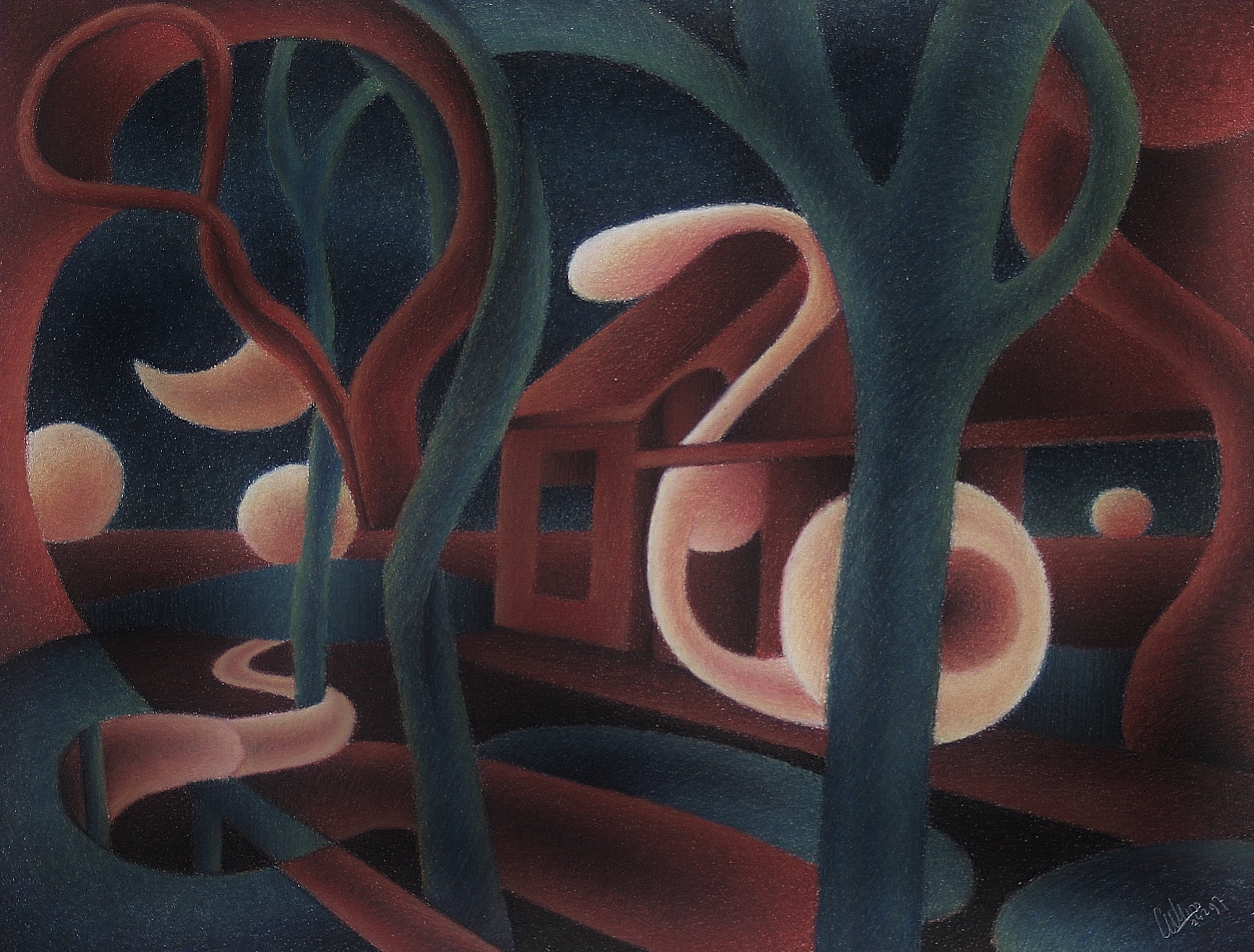 Geel Bruin Hart Licht Maan Nacht Boom Surrealisme Oog Boerderij Schaduw Bal Sphere Vraagteken Opvolging Vraagstuk Doorzonkamer