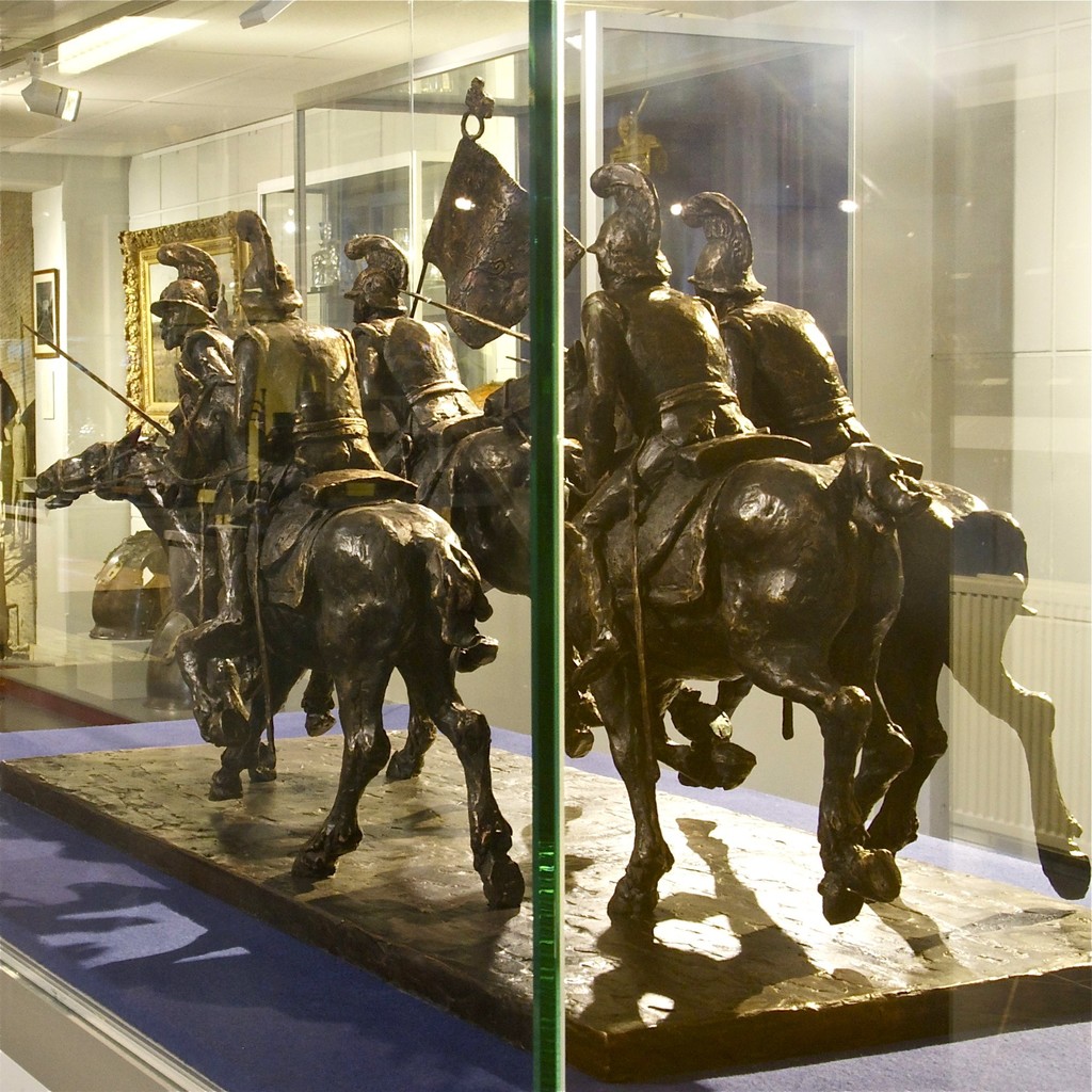 Eervolle opdracht gemaakt voor het Museum Nederlandse Cavalerie, Amersfoort. Het beeld stelt voor een groep van 5 zogenaamde 'Kurasiers' , behorend tot de "Zware Cavallerie". Het beeld staat ineen prachtige vitrine en meet 100 cm. bij plm. 50 cm. Voor een goede weergave van uniformering en assesoires hoefde ik niet ver te zoeken! Dank directie en vrijwilligers Museum Nederlandse Cavalerie!