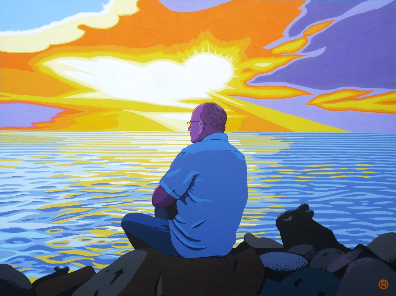 Ter herinnering aan Hans Wennink 1949-2014. In opdracht van de weduwe. Geschilderd naar de iconische foto die de rouwkaart sierde.