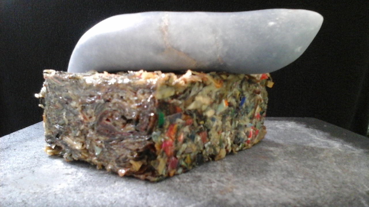 Woordenslang is gemaakt van blauw albast en papier. Het papier is geperst en daarna gelakt.