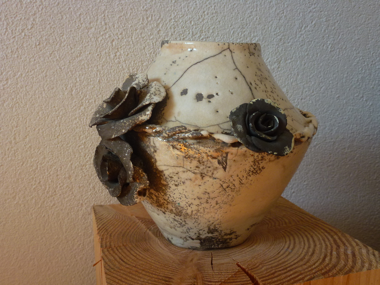 vaas gemaakt van klei, bisquit gebakken en raku gestookt