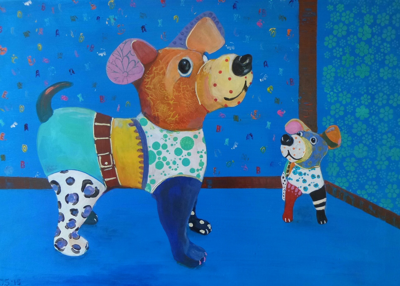Vrolijke hondjes voor Abel, onze kleinzoon . Op aanvraag ook naar eigen wens te maken.