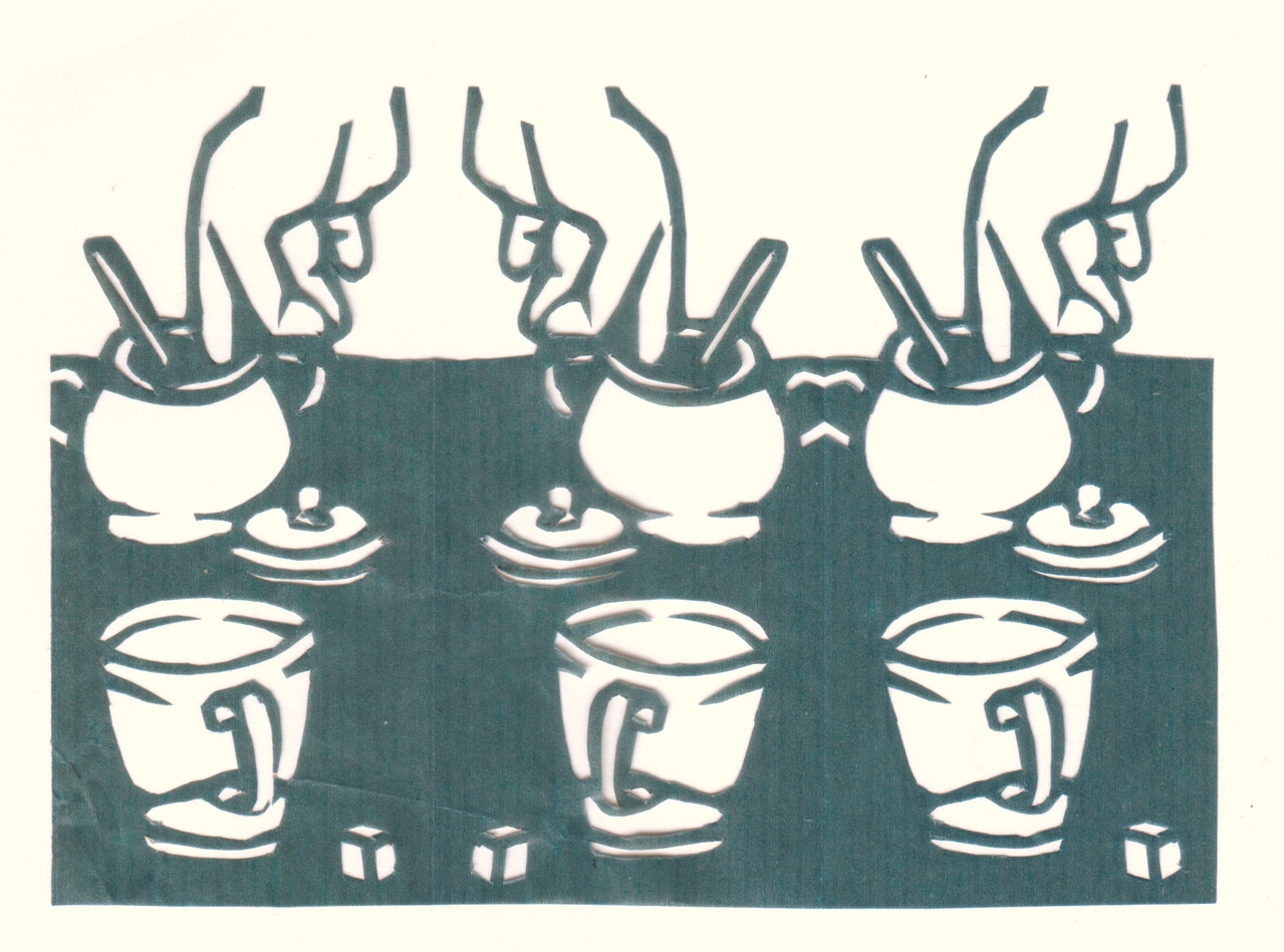 Blauw Papier Paper Cut Suikerpot Thee Knipkunst Knipwerk Suikerbiet Hoogkerk Scherenschnitt