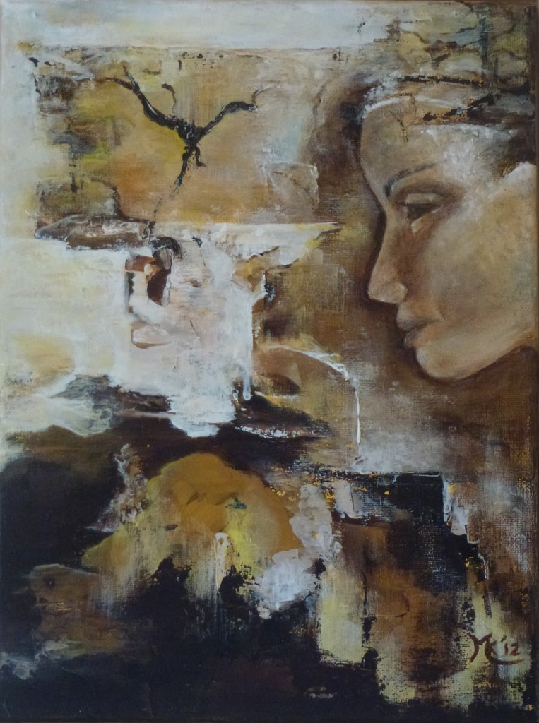 Dromen, acryl op doek in naturel baklijst : 40 x 30cm