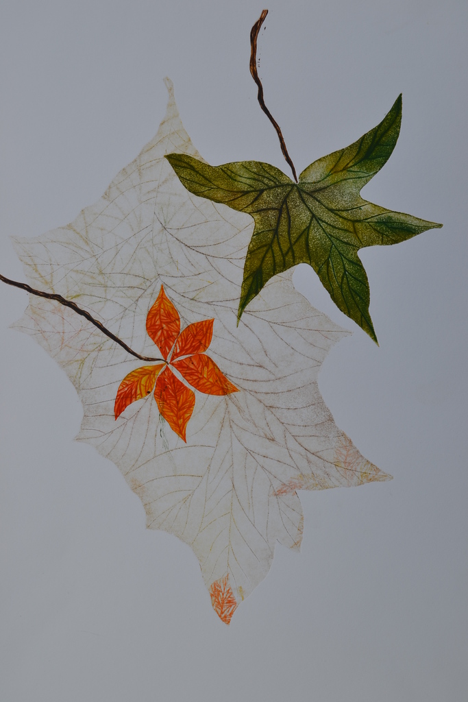 Feuilles VI - droge naald en aquatint - uitgezaagde zinkplaatjes - meerkleuren druk - oplage 1/1