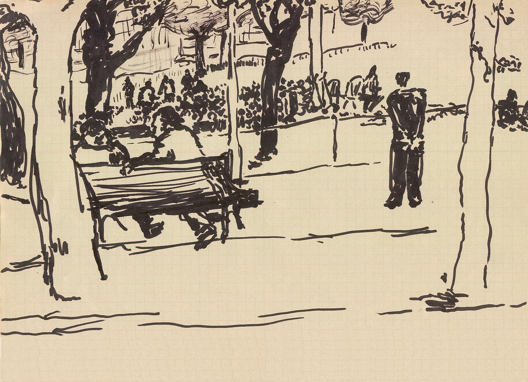 tekening van mensen op de Ramblas in Barcelona.