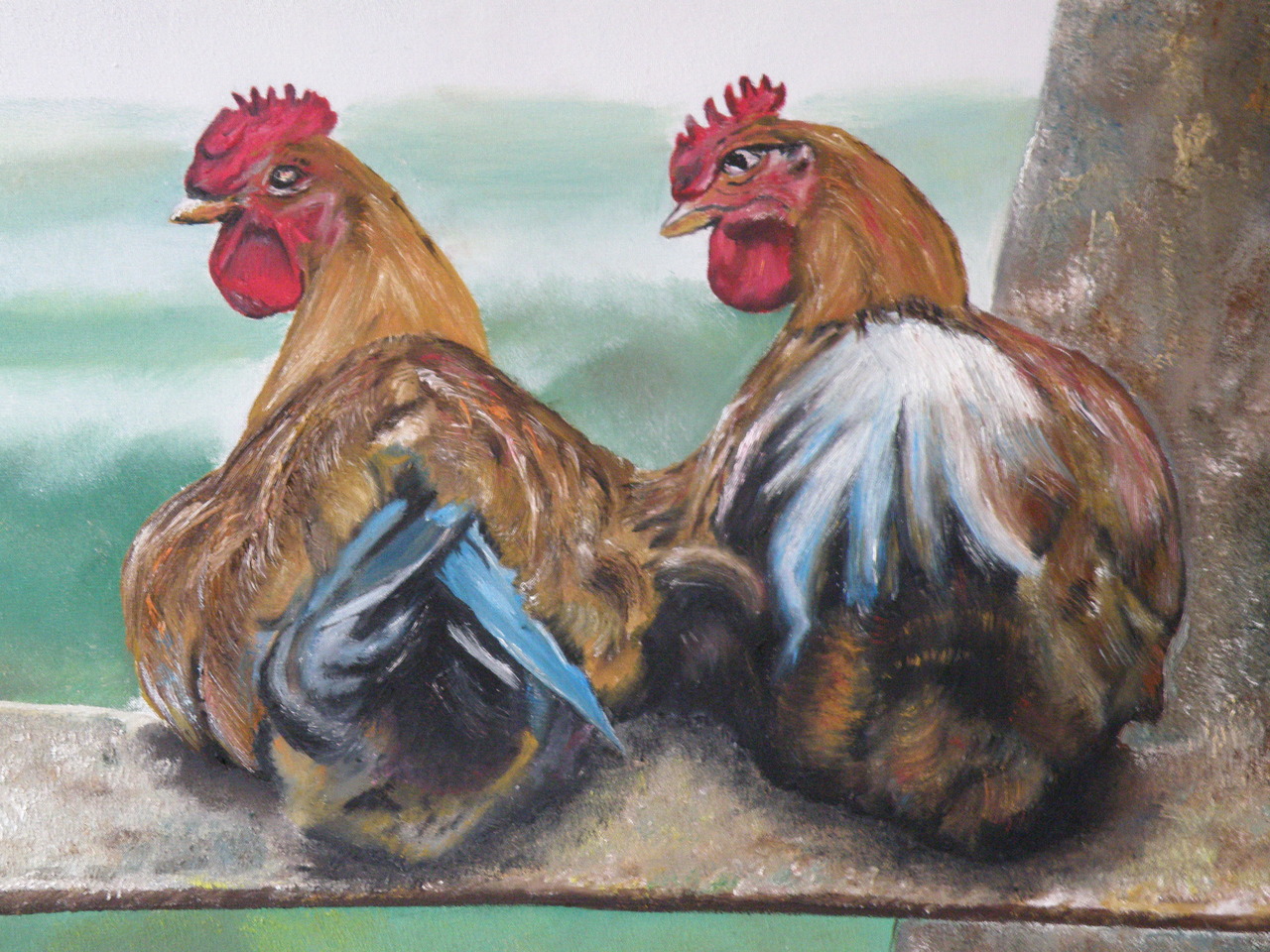 twee kippen op stok