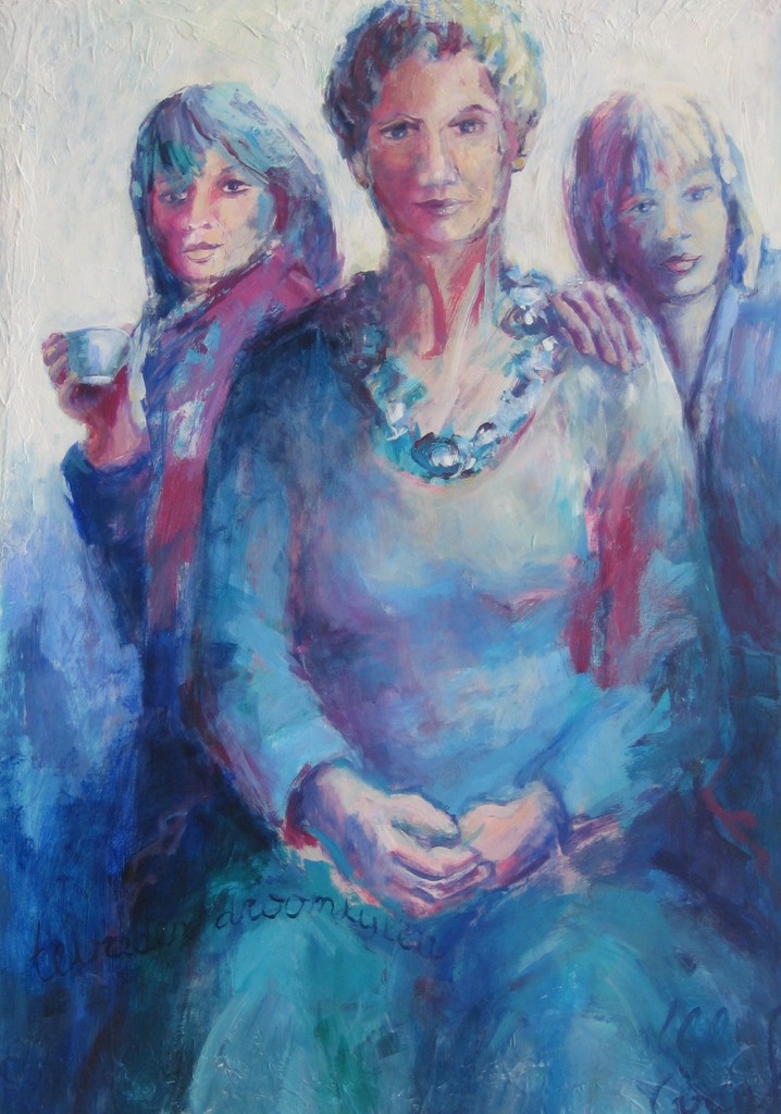 Schilderij is naar levend model geschilderd op 100 % katoen en vervolgens gemaroufleerd op paneel.