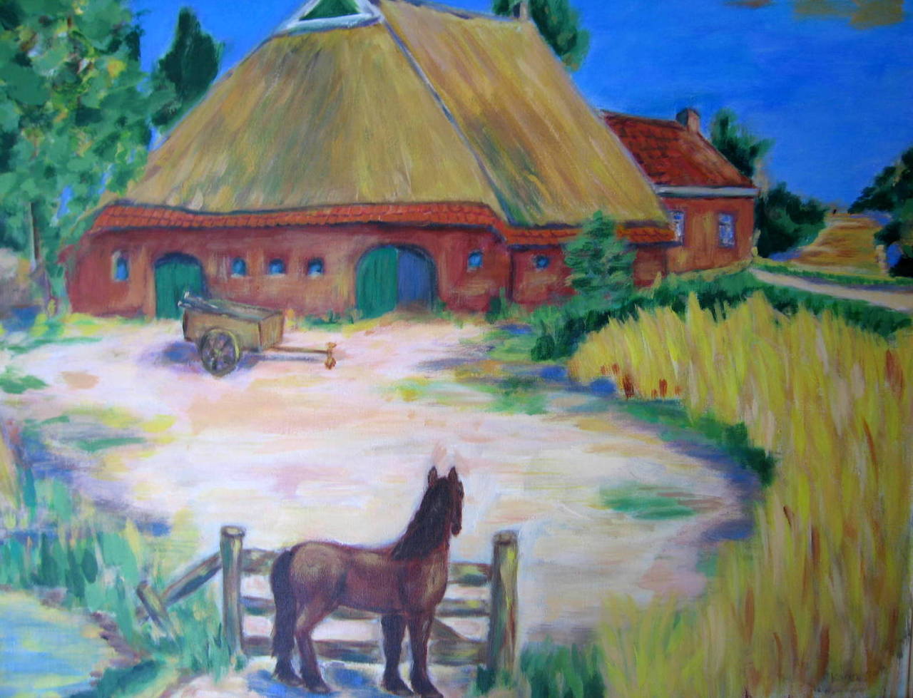 wachtend paard bij groningse boerderij, naar j.altink (de ploeg)